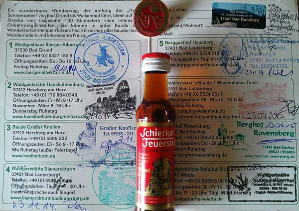 von der netten Wirtin (Susanne Dombrowsky) bekommen, incl. der goldenen Baudensteig-Nadel und einen kleinen Schluck Schierker.