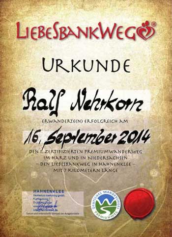 Urkunde Liebesbankweg
