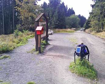 am ehemaligen Gasthof Auerhahn an der B 241. Eine Stempelkarte für die drei Stempelstellen am Weg kann man in der Touristinfo und in vielen Hotels bekommen.